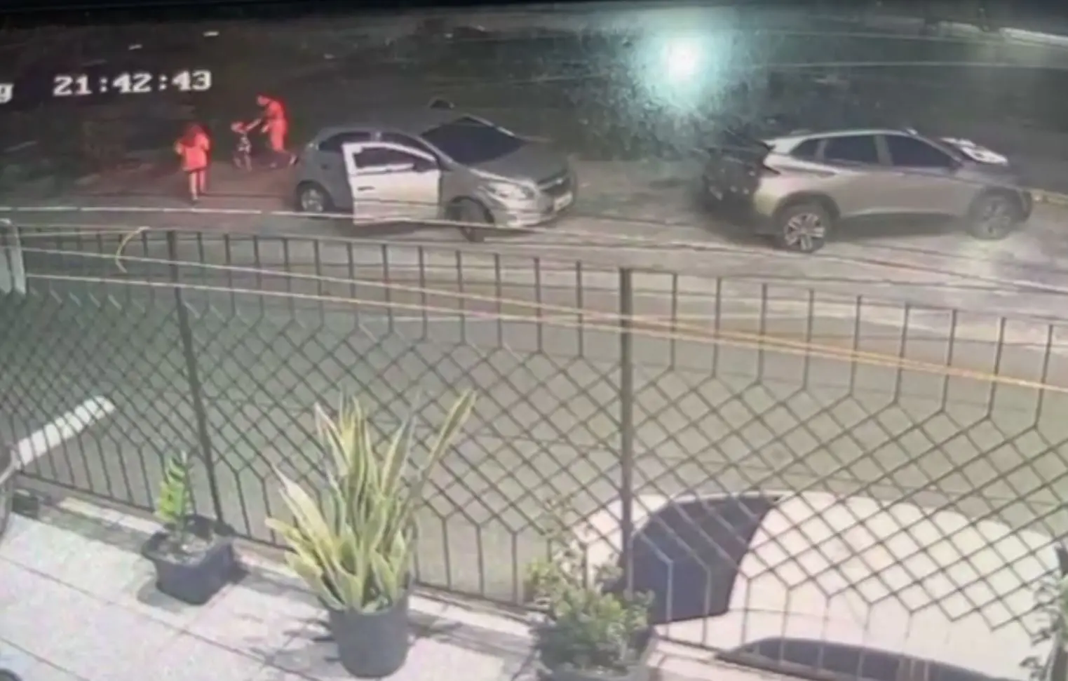 Dois homens armados se aproximaram, renderam o homem e pediram para a criança de 4 anos, que estava no banco de trás, ser retirada do carro. Logo depois, os suspeitos levaram o veículo, três celulares, documentos, bolsas, chaves e outros pertences pessoais da família. O crime foi registrado por câmeras de segurança da região.
