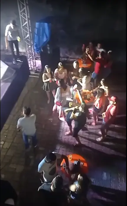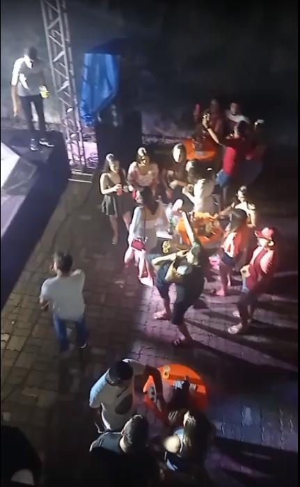 A festa era realizada em uma casa alugada para eventos, com música ao vivo, patrocínio e serviço de comida e bebida. Imagens do local mostram pessoas sem máscara e aglomeradas próximo ao palco.