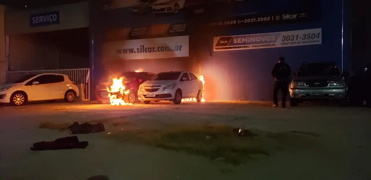 67 - Veículos incendiados em frente de conssecionária no Centro
