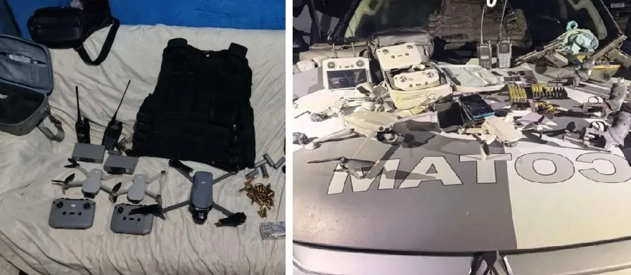 As diligências continuaram até as autoridades chegarem às duas mulheres. No imóvel foram apreendidas mais quatro armas de fogo, três drones, um colete balístico, 110 munições de diversos calibres e rádios comunicadores.