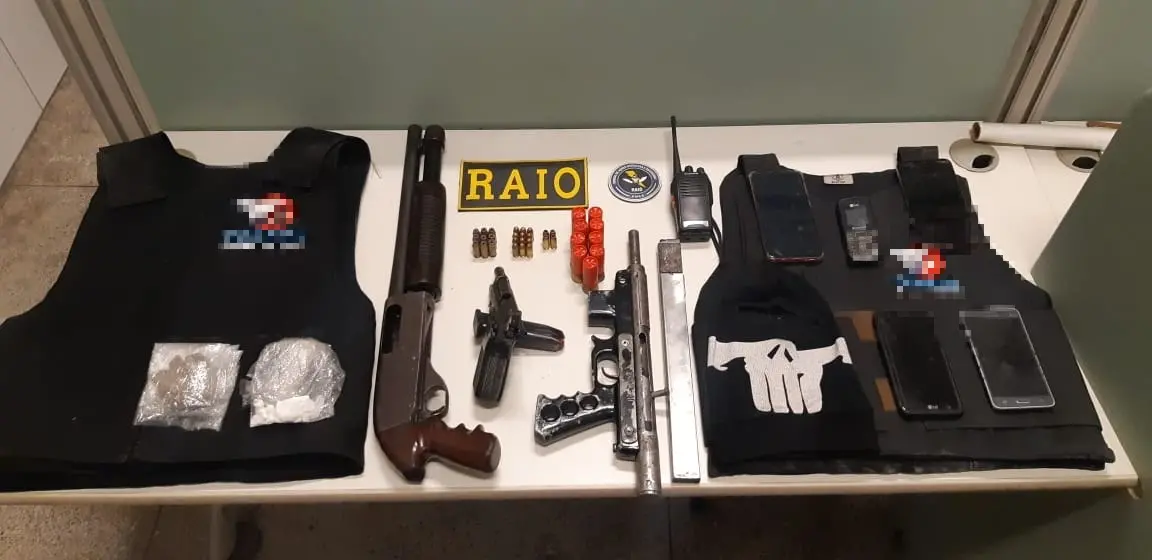 Na ação, foram apreendidos uma pistola calibre 380, uma submetralhadora artesanal calibre .40, uma escopeta calibre 12, um rádio comunicador, munições de diversos calibres, duas balaclavas, dois coletes balísticos, três aparelhos celulares e uma substância análoga à cocaína. A Polícia Militar informou que o grupo foi encaminhado à Delegacia de Paraipaba.