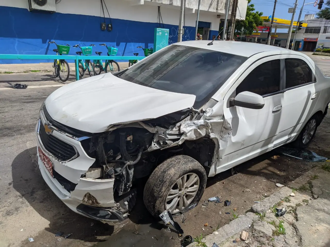 Grupo rouba carro de aplicativo, faz motorista refém e colide em táxi e muro ao fugir da Polícia