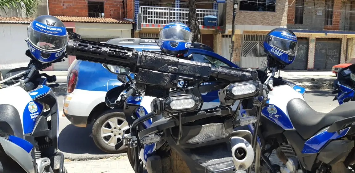Guardas municipais apreenderam um simulacro de fuzil no Bairro Vila Velha, em Fortaleza, na manhã desta quarta-feira (16). Dois homens que portavam o armamento falso fugiram e não foram capturados.