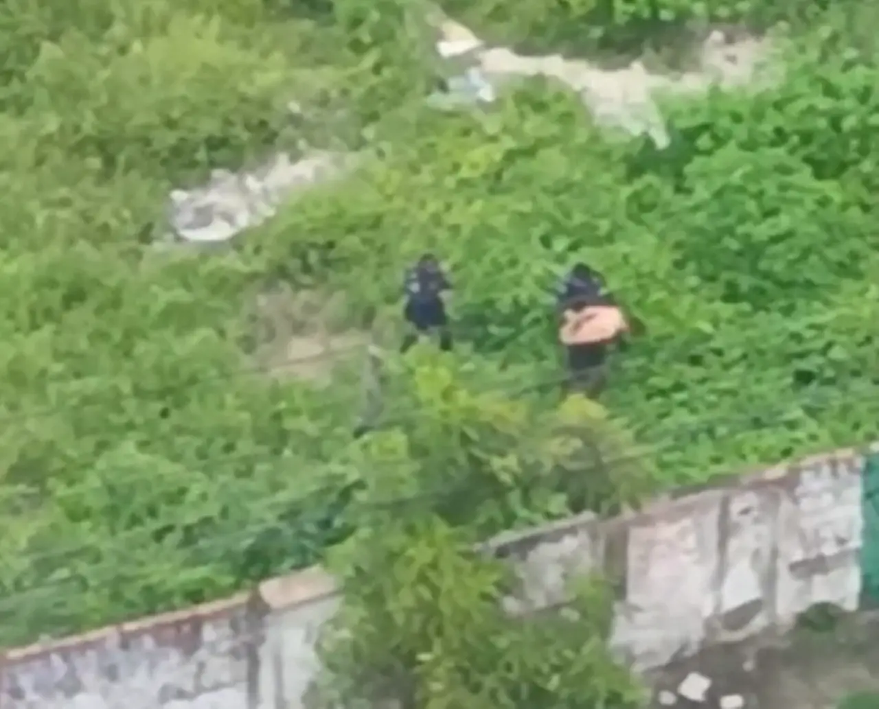 Os guardas se encaminharam à praça e tentaram abordar o suspeito, que pulou o muro de um terreno baldio e se escondeu no matagal, mas foi capturado. Antes de ser levado às autoridades policiais, o suspeito recebeu atendimento médico após adquirir queimaduras causadas pelo contato com urtigas durante a fuga.