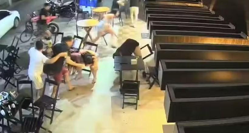 Câmeras de segurança da região registraram o momento do homicídio. O homem estava sentado em uma mesa na parte externa de um bar.