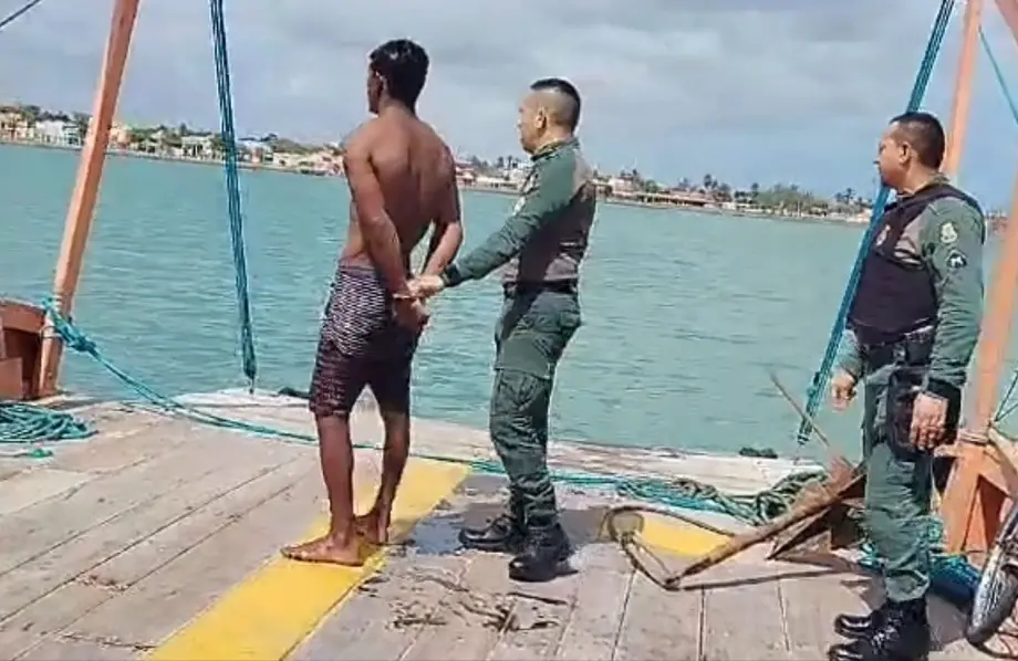 Um homem de 24 anos foi detido pela Polícia Militar do Ceará (PMCE) em alto mar, na costa de Camocim, no Litoral Oeste do Ceará, na manhã deste domingo (5). A detenção se deu em cumprimento a um mandado de prisão que estava em aberto pelo crime de violência doméstica.
