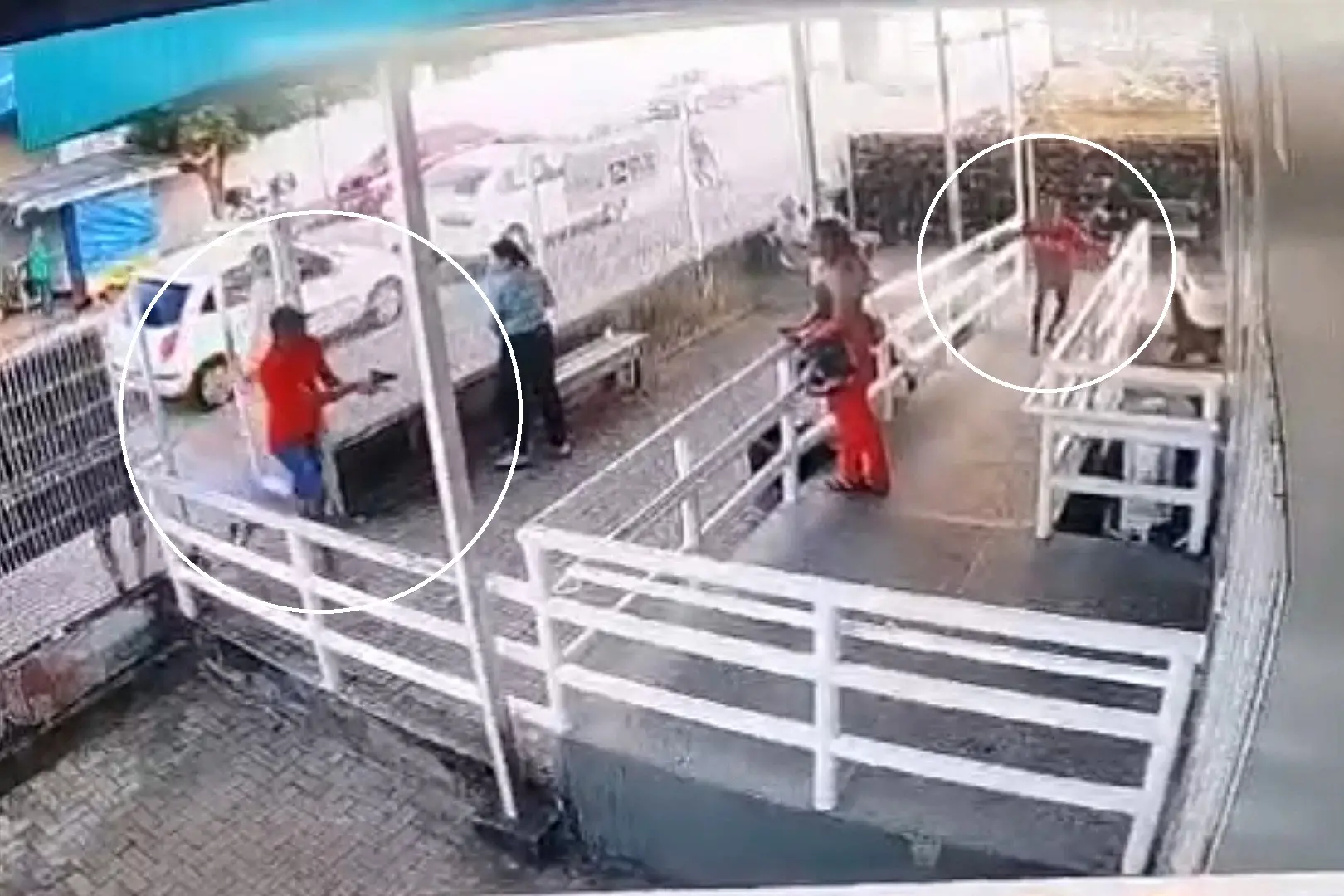 Outras pessoas que estavam sendo atendidas correm com medo de possíveis disparos. O atirador persegue a vítima pela lateral da entrada da unidade de saúde e efetua os disparos. Em seguida, o suspeito passa pelo segundo homem que entrou correndo com ele e os dois fogem do local;.