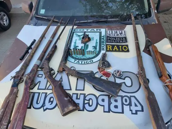 Com ele, foram apreendidos espingardas, revólver, pistola de ar comprimido e munições