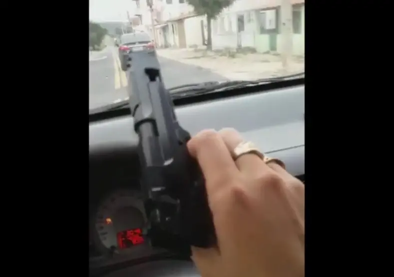 A polícia conduziu um homem à delegacia, nesta quarta-feira (22), após ele aparecer em vídeo com um simulacro de pistola na mão e consumindo droga ilícita, dentro de um carro, no município de Guaraciaba do Norte.