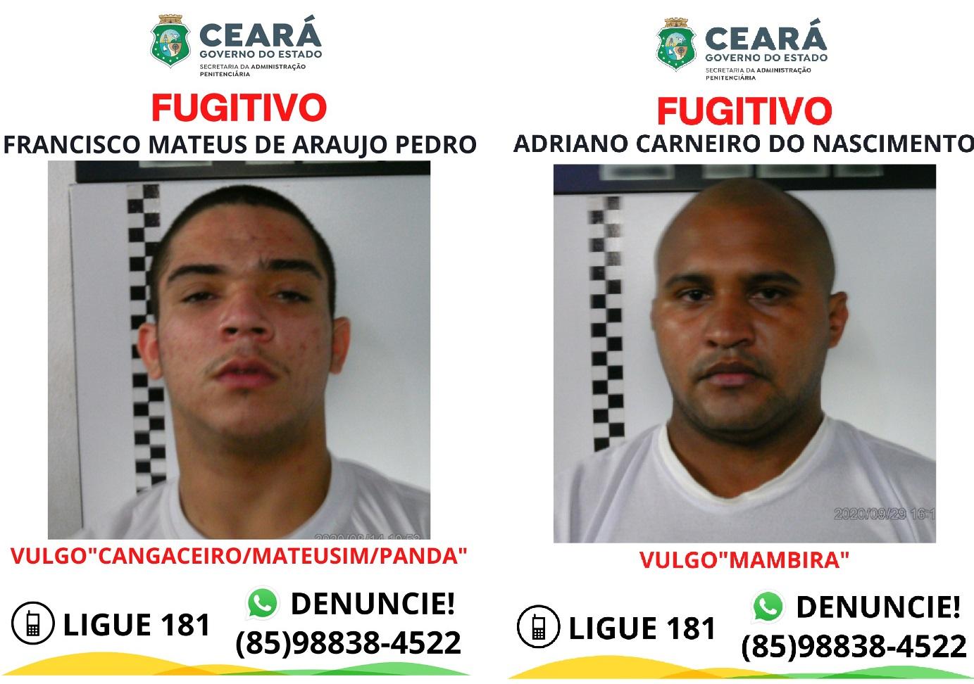 Os foragidos são acusados pelo Ministério Público do Ceará (MPCE) por crimes de homicídio