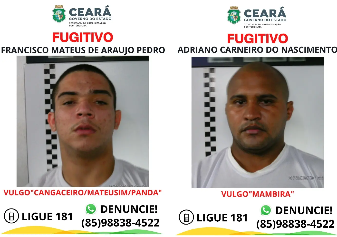 Segundo a SAP, os policiais penais permanecem em "diligências ininterruptas para efetuar a prisão dos outros dois". Populares que tiverem informações que possam auxiliar as autoridades, podem ligar para o Disque 181 ou (85) 98838-4522.