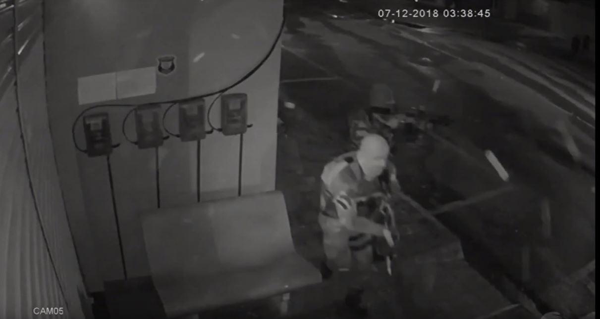 Quatorze pessoas, sendo seis reféns e oito assaltantes, foram mortos por tiros de PMs durante uma tentativa de assalto a banco em Milagres, na Região do Cariri. As imagens mostram os policiais militares atirando de fuzil contra cinco reféns da mesma família, a menos de sete metros de distância, quando eles tentavam se proteger dos disparos atrás de um poste de iluminação.