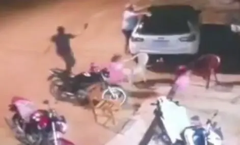 Imagens de câmeras de segurança divulgadas pela TV Verdes Mares mostram que os criminosos chegaram já apontando as armas e foram em direção a Gederson