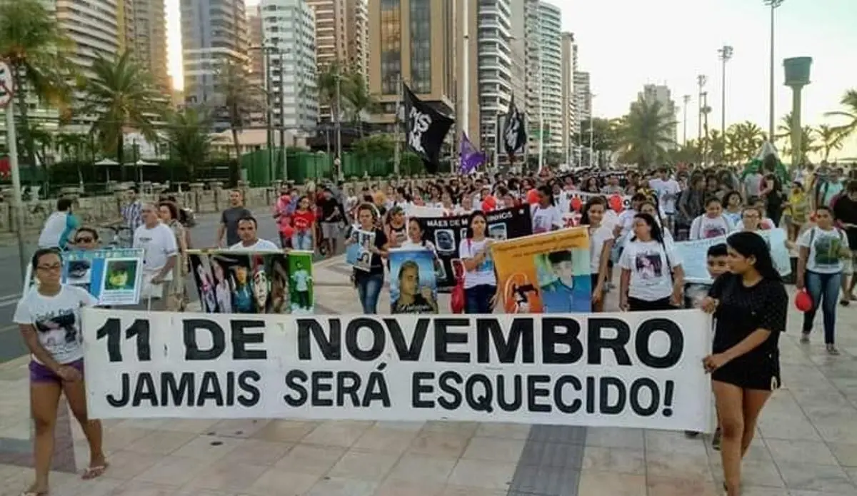 11 pessoas foram mortas na chacina. Dentre as vítimas está Álef Sousa Cavalcante, filho de Edna Souza. Para buscar Justiça pelo caso e com intenção de evitar novas mortes na periferia de Fortaleza, Edna foi uma das criadoras do coletivo 'Mães do Curió'. Já são quase oito anos de luta e com expectativa de punição aos acusados.