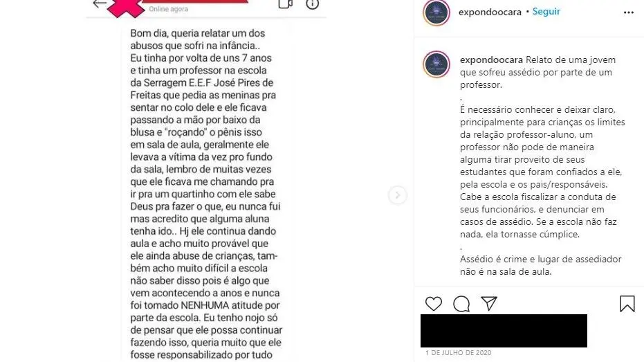 Um perfil criado na rede social Instagram, denominado 'Ocara Exposed', segundo o MPCE, colaborou para as pessoas tomarem conhecimento de que poderiam denunciar crimes mesmo anos após a ocorrência.