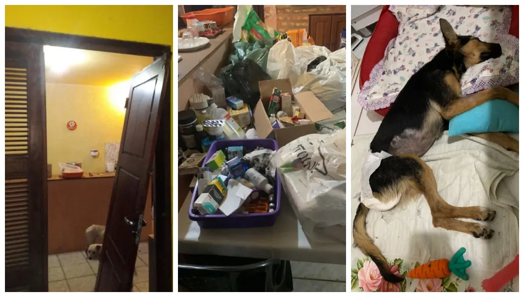 Lindoneide disse que a porta da frente da casa foi arrancada, o imóvel foi todo revirado, mas que nada material foi levado, apenas a chave de um dos quartos, onde ficava o estoque de ração, medicamentos e produtos de limpeza.