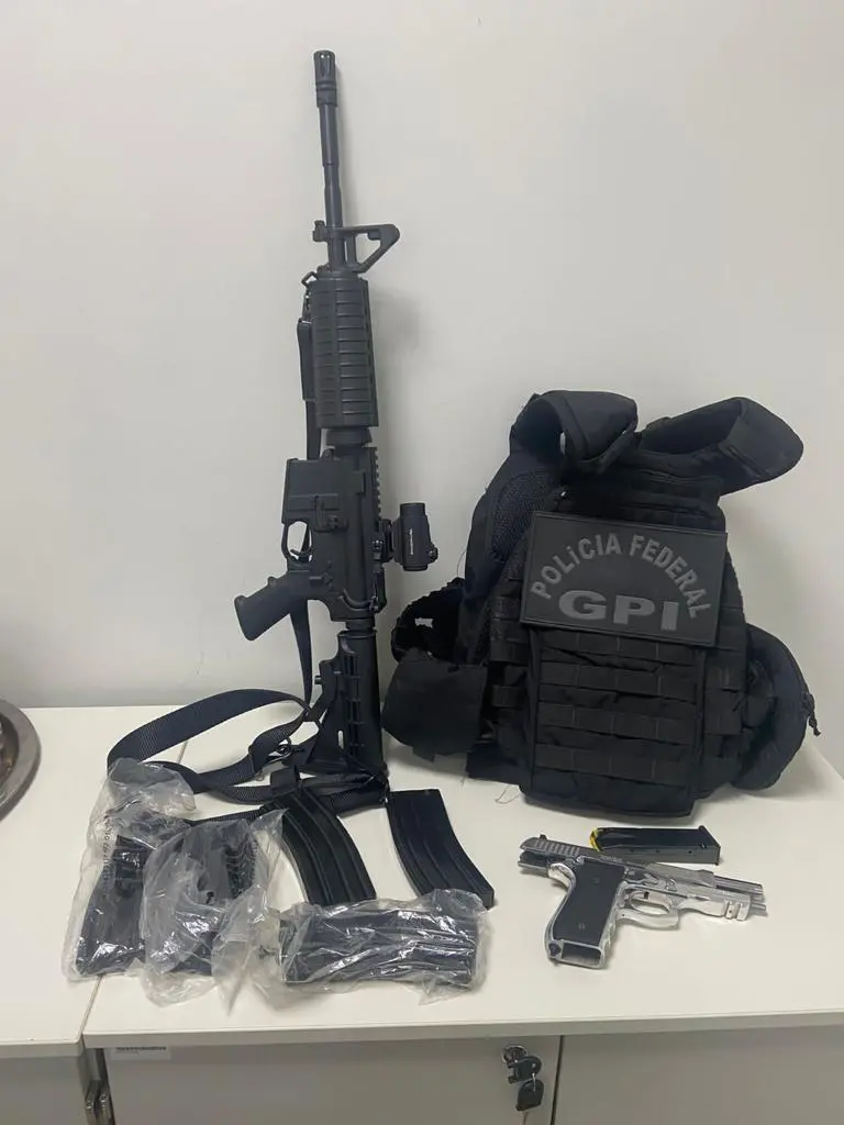 Durante as buscas, a Polícia Federal apreendeu um fuzil calibre 5.56 e uma pistola 9 mm, além de mídias e documentos que serão analisados na sequência da investigação.
