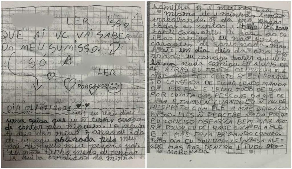 Uma menina de 12 anos escreveu uma carta denunciando o pai por estupro. No documento, detalhou ser "abusada" desde os 7 anos. Na manhã desta quinta-feira (9), a Polícia Civil do Estado do Ceará (PC-CE) prendeu o homem de 34 anos, que não teve a identidade revelada, em Caucaia.