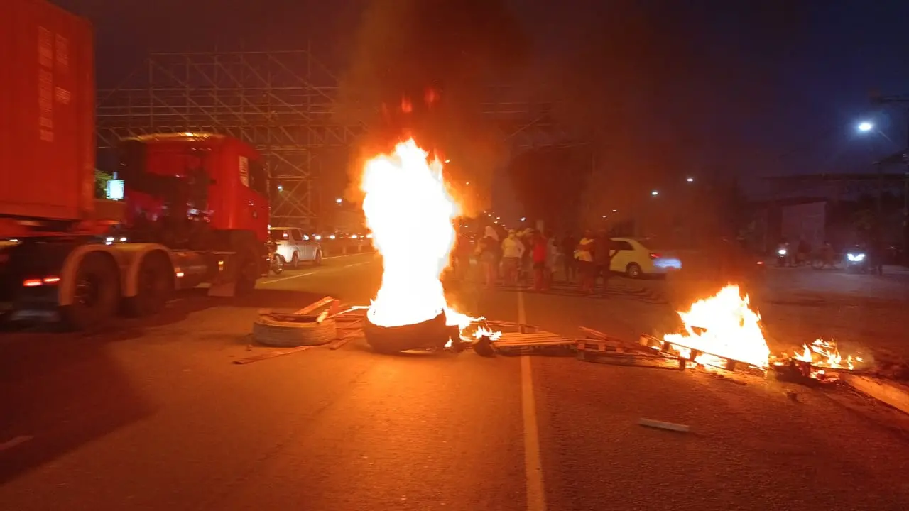 Moradores queimaram pneus e interditaram a BR-116, em Fortaleza, no fim da tarde desta sexta-feira (5). Segundo a Polícia Rodoviária Federal (PRF), o protesto foi realizado por pessoas que teriam sofrido ameaças de membros de facções criminosas.