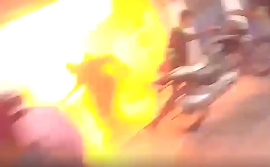 Em seguida a motocicleta explode, causando correria e pânico entre os presentes. Dois homens, de 31 e 23 anos, tiveram queimaduras de 2º grau nos membros superiores. Outro de 24 anos teve queimaduras nos membros superiores e inferiores, além da região da cervical.