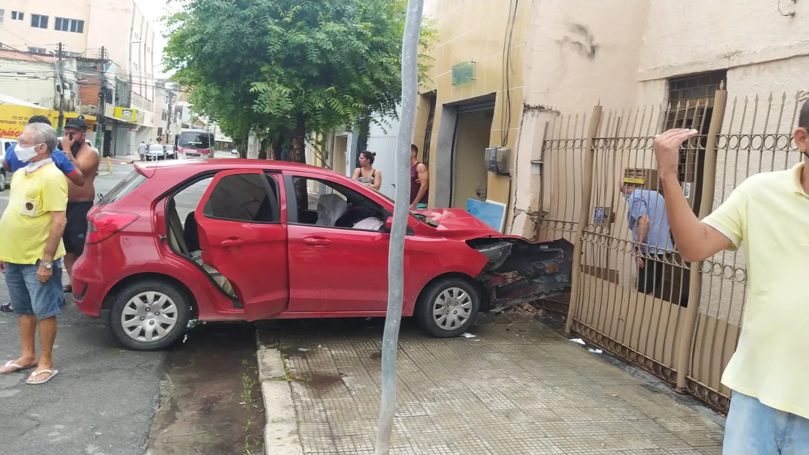 Motorista de aplicativo é assaltada, persegue suspeito e bate carro em casa no Centro de Fortaleza