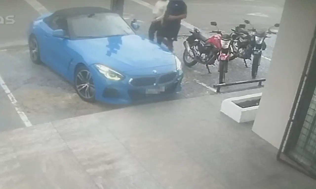 O caso aconteceu um estacionamento nesse domingo, quando o condutor do carro de luxo foi abordado por dois homens