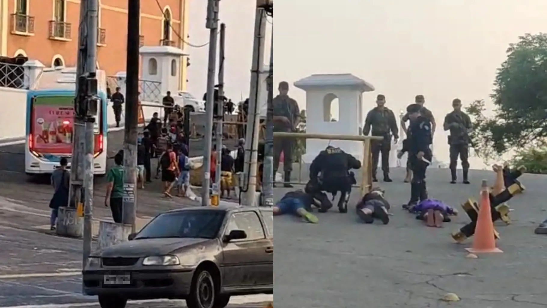 A abordagem do trio de adolescentes teria começado nas proximidades da avenida Alberto Nepomuceno. Conforme a PM, por volta das 6h20, os policiais foram acionados pela população "informando que um ônibus estava sendo assaltado". Os PMs localizaram o veículo em frente ao quartel, "onde os sentinelas do exército abordaram o trio que estava armado com uma faca".