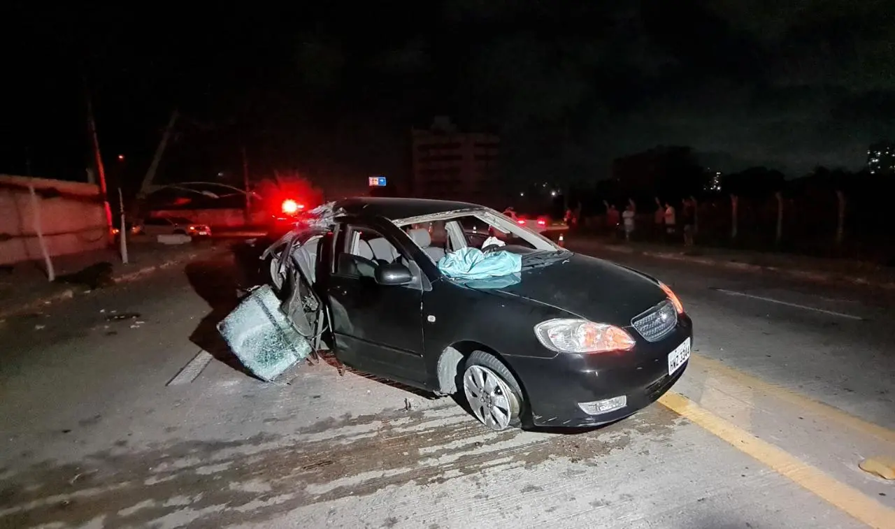 Motorista embriagado capota carro blindado e causa colisão com outro veículo na Praia do Futuro