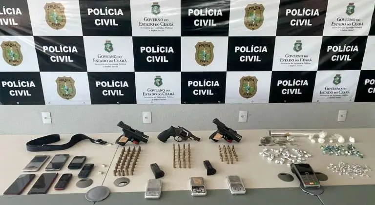 No imóvel onde o casal estava, os policiais apreenderam duas pistolas (uma de calibre 380 e outra Ponto 40), um revólver calibre 38; quase 100 munições de calibres variados; três balanças de precisão; 63 trouxinhas de cocaína; 137 trouxinhas de maconha; 14 trouxinhas de crack; seis aparelhos celulares; e outros materiais para o tráfico de drogas. Carolaine foi autuada pelos crimes de tráfico de drogas, associação para o tráfico e posse irregular de arma de fogo de uso permitido.