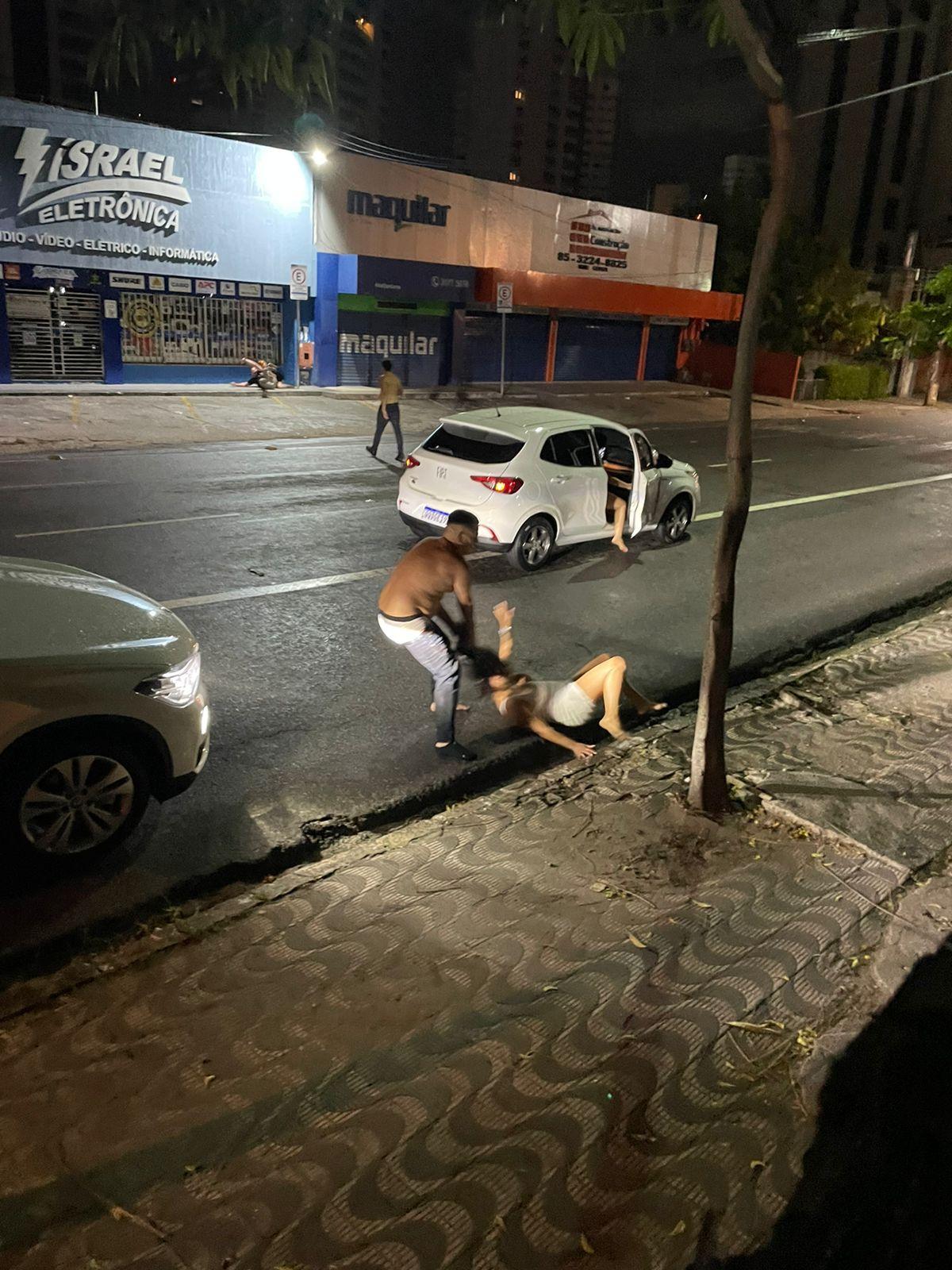 Um caso de agressão contra mulher foi registrado no bairro Aldeota na madrugada de domingo (13). Em imagens que circularam nas redes sociais, é possível ver um homem alterado puxando uma mulher pelo cabelo na Avenida Santos Dumont. Por conta da ocorrência, a Delegacia de Defesa da Mulher de Fortaleza está investigando o caso de agressão.