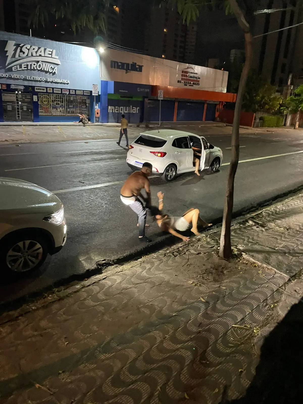 Um vídeo também mostra uma confusão entre algumas pessoas na avenida. Um carro de luxo chega a trafegar na contramão.