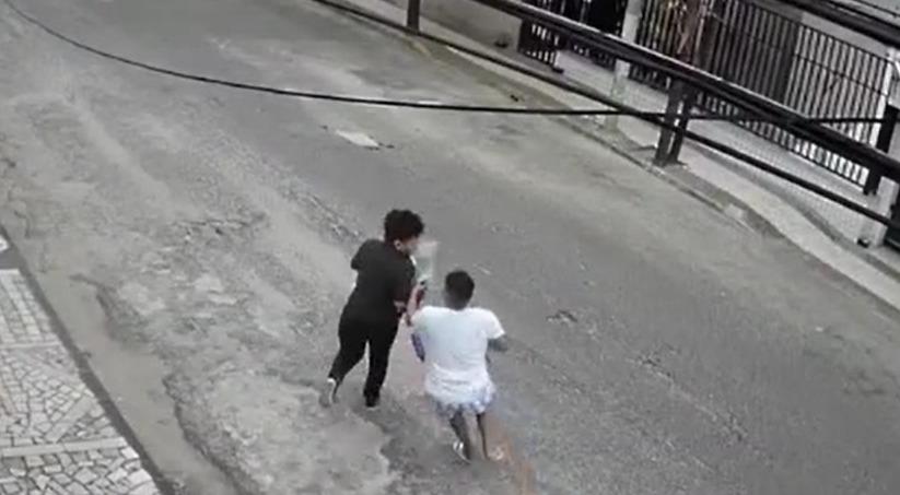 Depois de alguns segundos de luta corporal, o criminoso vai embora e a mulher junta suas coisas e se levanta. Ela teve alguns cortes pelo corpo, mas não corre risco.