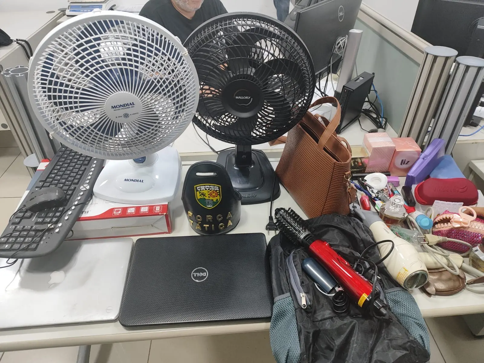 Entre os materiais roubados e recuperados posteriormente estão: uma TV TCL 50; dois ventiladores; notebook; MacBook com teclado; secador de cabelo; escova elétrica; aparelho DVR e três bolsas contendo diversos pertences pessoais.