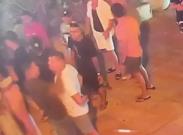 Um vídeo mostra o suposto início da briga. Paulo Henrique, de blusa branca, estava com amigos, na fila de entrada para a barraca de praia, quando encarou um homem - que seria o segurança do estabelecimento.