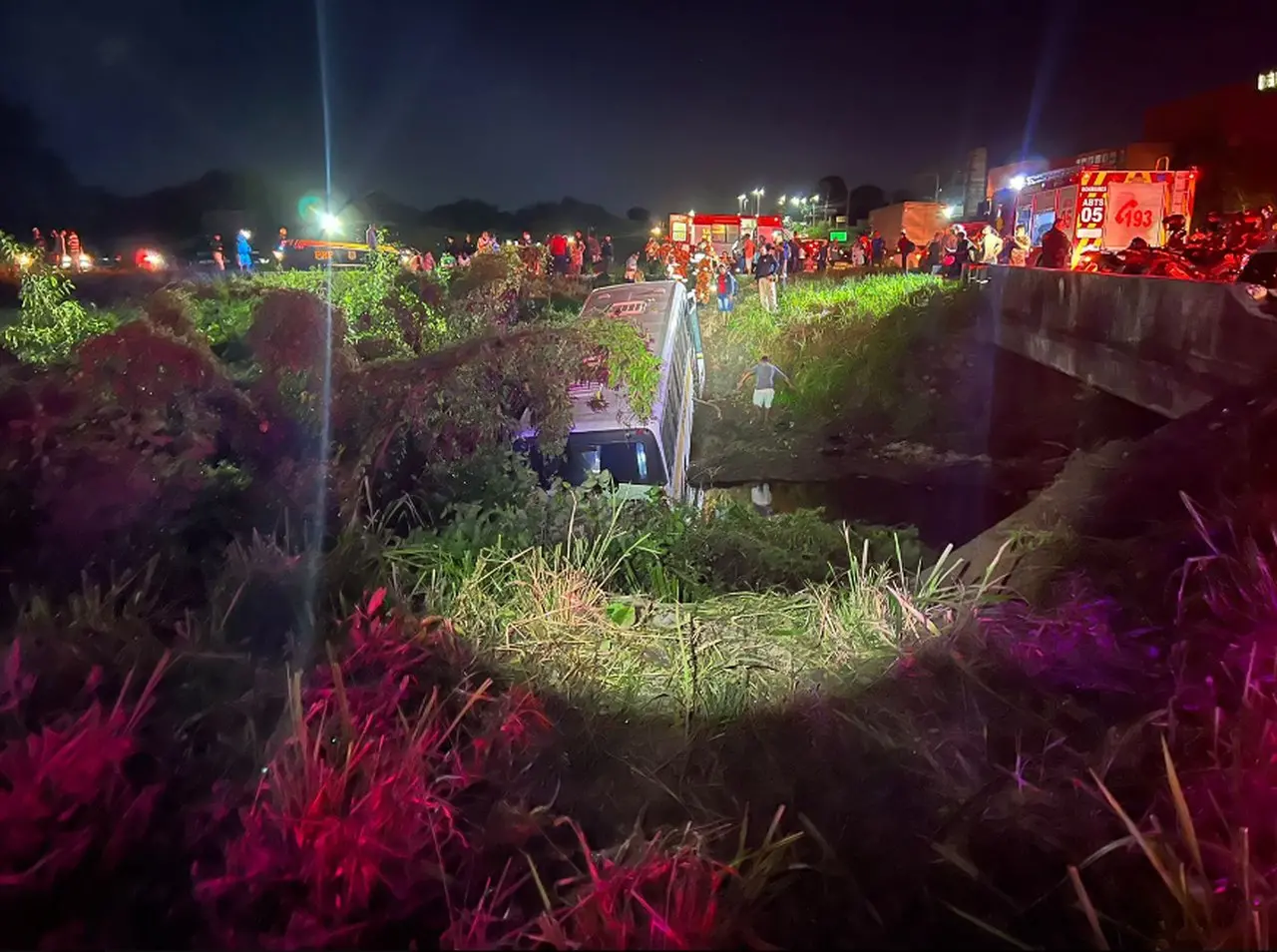 Há uma estimativa de que o veículo levava 25 passageiros, incluindo quatro crianças e duas gestantes. O motorista ficou preso às ferragens e os bombeiros precisaram realizar cortes no veículo para retirá-lo, segundo o Corpo de Bombeiros.