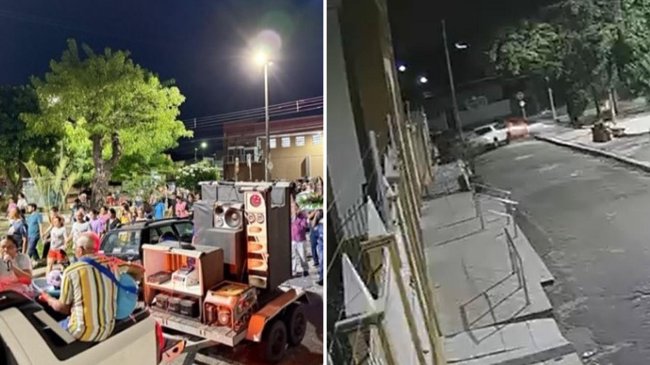 O paredão de som furtado possui a placa PNJ 7610. A paróquia divulgou as imagens da ação e pede ajuda para identificar os envolvidos e recuperar o equipamento.