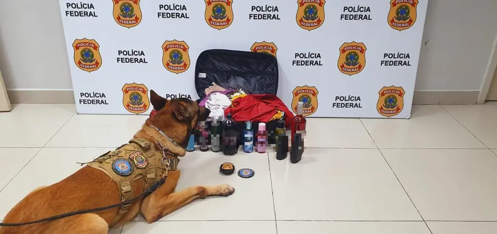 A mulher foi flagrada no embarque, com a ajuda do cão farejador Inu, da PF. O animal, da raça belga malinois, atua na Delegacia de Repressão a Entorpecentes da PF. Exames preliminares realizados pelos policiais confirmaram a droga.