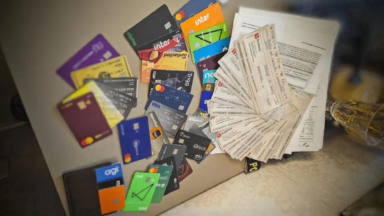 Durante o cumprimento dos mandados de busca e apreensão na residência dos investigados, foram encontrados diversos celulares, chips de telefonia móvel, documentos de terceiros alheios à residência, cartões de crédito, cheques bancários e outros materiais que confirmam as suspeitas da investigação policial.