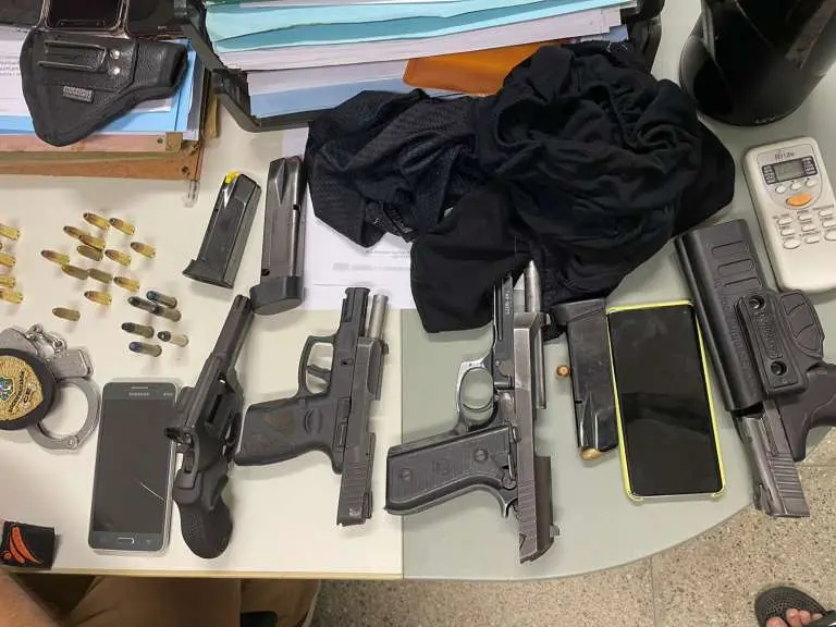 Com o grupo, a Polícia afirma terem sido encontrados quatro armas de fogo (três pistolas e um revólver), munições, balaclavas e os veículos utilizados diretamente e no apoio da ação criminosa. Os suspeitos foram autuados pelos crimes de extorsão mediante sequestro e associação criminosa.