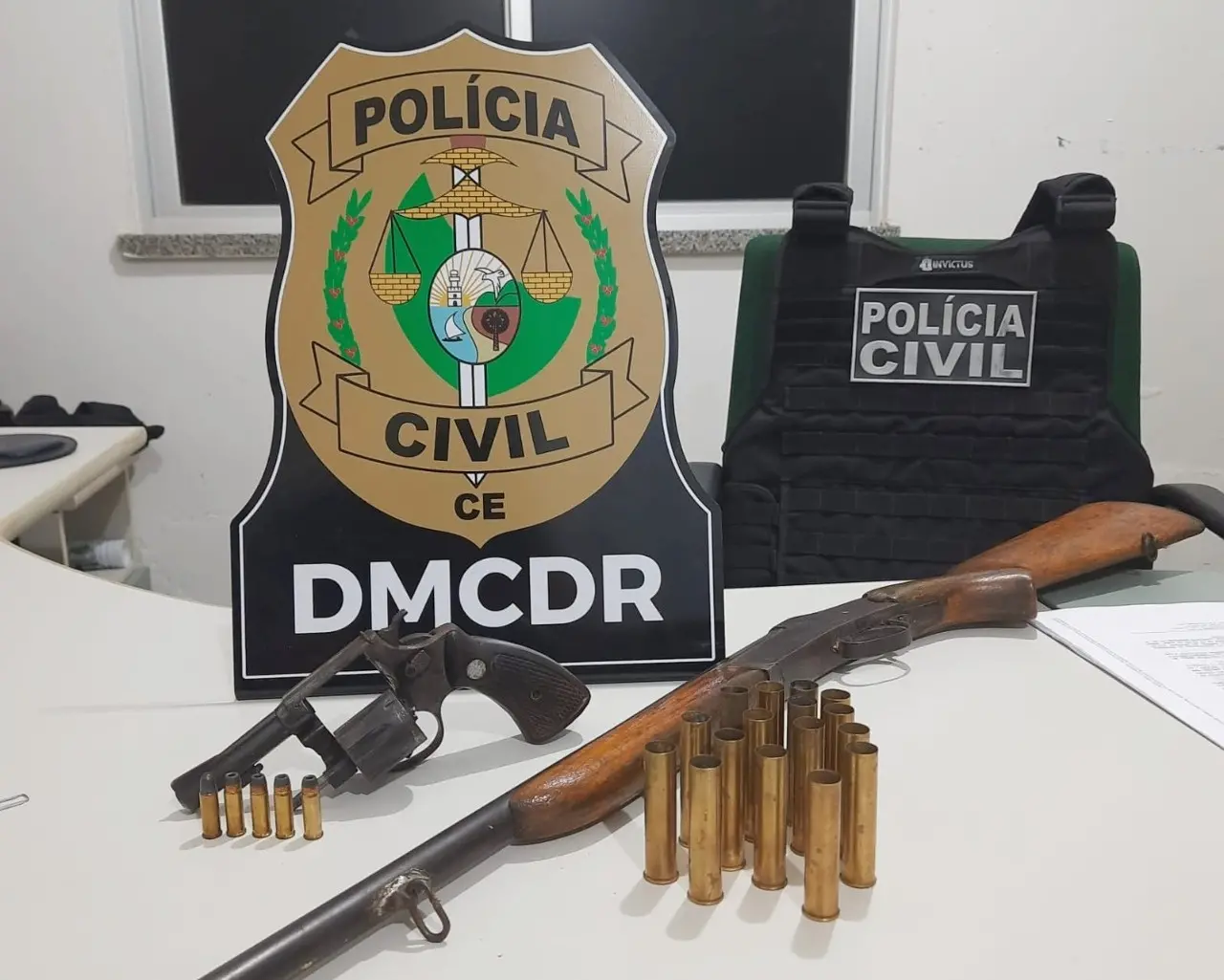 A Polícia Civil do Ceará apreendeu duas armas de fogo e munições durante o cumprimento de um mandado de busca e apreensão contra um homem investigado por ameaçar crianças que jogavam futebol em frente à sua casa, em Cedro, na Região do Cariri.
