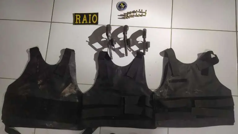 A PM também prendeu um segundo grupo, formado por três pessoas e um adolescente, que tentou ajudar na fuga do homem de 25 anos. Antonio Gilson Bento Rodrigues, 33, Caio Victor Marques de Souza, 19, e Samuel Delfino de Almeida, 32, vão responder por associação criminosa, enquanto o adolescente de 17 anos a um ato infracional análogo à associação criminosa. Os adultos foram autuados ainda por corrupção de menores e tentativa de homicídio contra os policiais. As três armas e coletes foram apresentados na Delegacia Metropolitana de Horizonte.