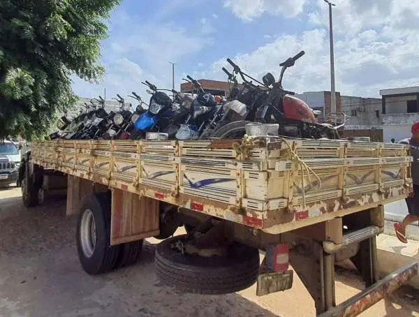 A Polícia Civil apreendeu 14 motocicletas com sinais de adulteração, na quarta-feira (16), em uma residência no bairro São Luiz, em Morrinhos, a 234 quilômetros de Fortaleza. A ofensiva também resultou nas apreensões de celulares, peças de motos, ferramentas e dinheiro.