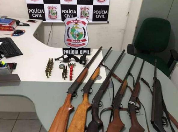 A Polícia Civil prendeu quatro homens e apreendeu sete armas e várias munições em propriedades rurais de Jucás, na Região Centro-Sul do Estado, nesta quarta-feira (8).