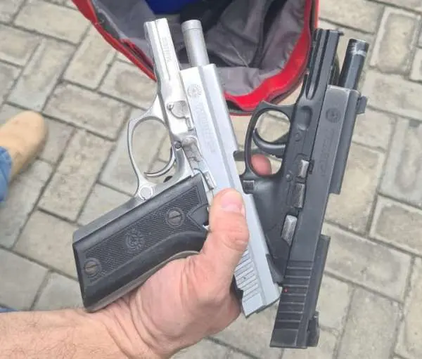 Durante a abordagem, o suspeito foi encontrado com duas pistolas de calibre 40 e munições. Por isso, Totó foi autuado em flagrante por porte ilegal de arma de fogo.