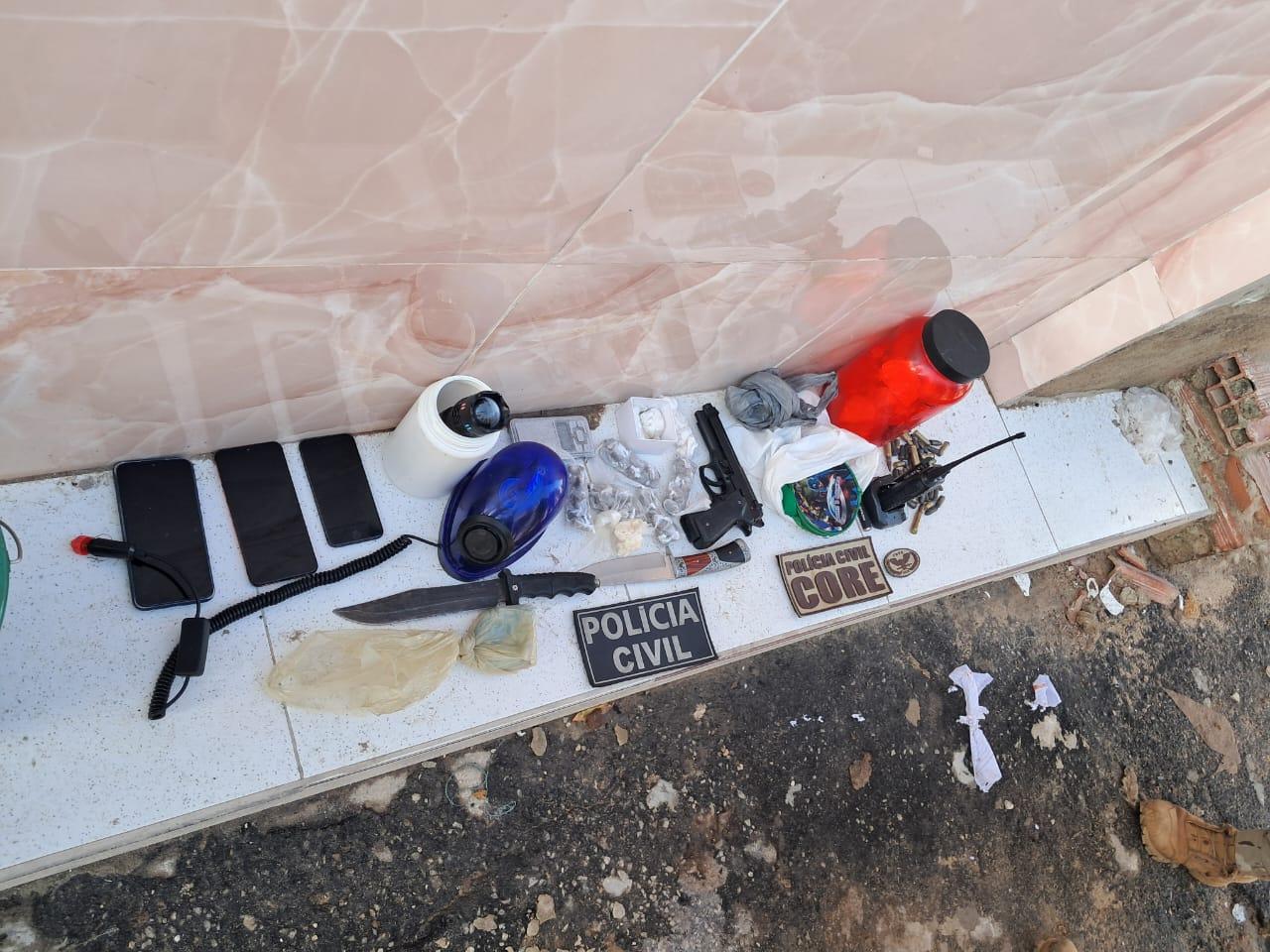 Durante o cumprimento dos mandados de busca, os policiais civis apreenderam um quilo de cocaína, 25 gramas de crack e 200 gramas de droga do tipo skank, um simulacro de pistola, diversas munições, além de dois veículos e dezenas de celulares.