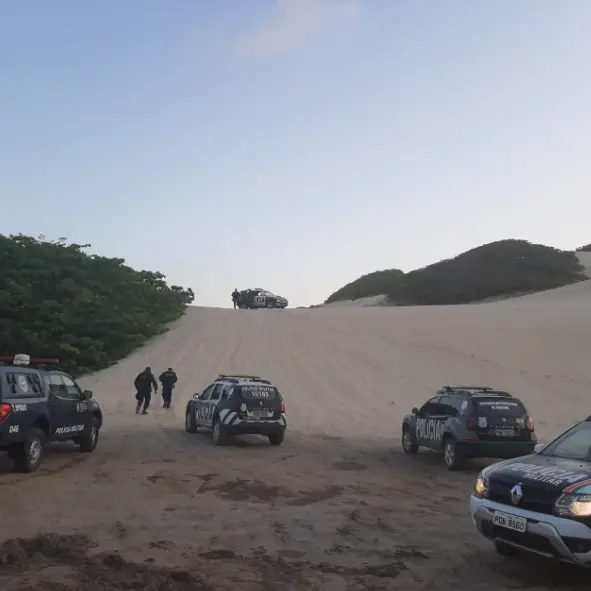 Uma operação das polícias Civil e Militar investiga suspeitos de participar de um vídeo onde eles exibem armas para o alto, entre elas uma de grosso calibre. O vídeo, de acordo com a polícia, foi gravado entre os dias 7 e 8 de novembro em cima de uma duna na praia de Barra Nova, no município de Cascavel, a 62 km de Fortaleza.