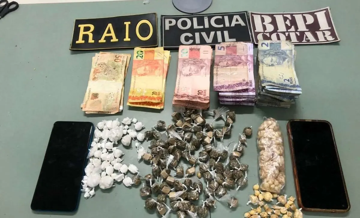 Dois dos presos em flagrante foram autuados por tráfico de drogas. O terceiro foi autuado por posse irregular de arma de fogo de uso permitido.