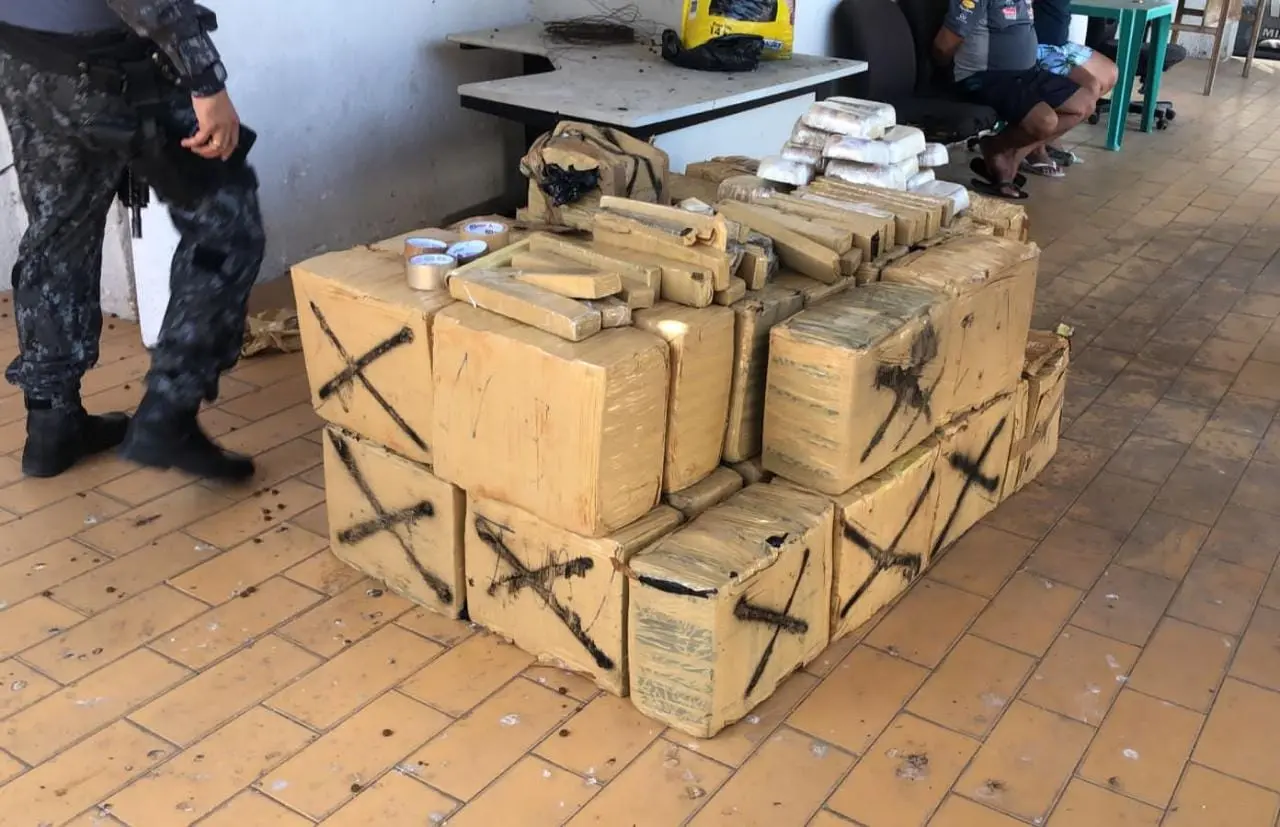 No início da tarde deste sábado (11), equipes policiais se deslocaram para o local e, com a autorização de dois homens que se apresentaram como seguranças do terreno, entraram na propriedade e localizaram a droga empacotada e empilhada.