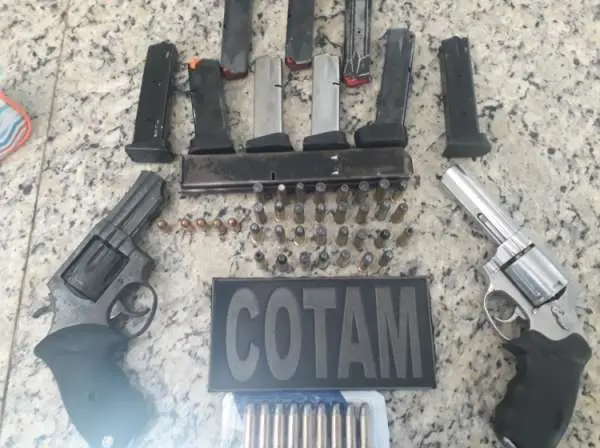Com o suspeito, a polícia apreendeu duas armas de fogo e uma grande quantidade de munição.