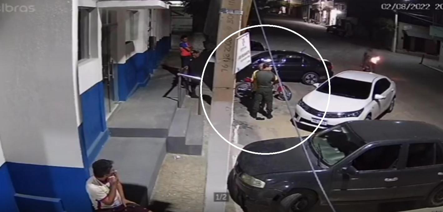 Uma câmera de segurança registrou o momento em que um policial militar deu um tapa em um idoso, durante abordagem policial na cidade de Itapajé — distante 308,3 km de Fortaleza. O fato aconteceu em frente a um hospital público.